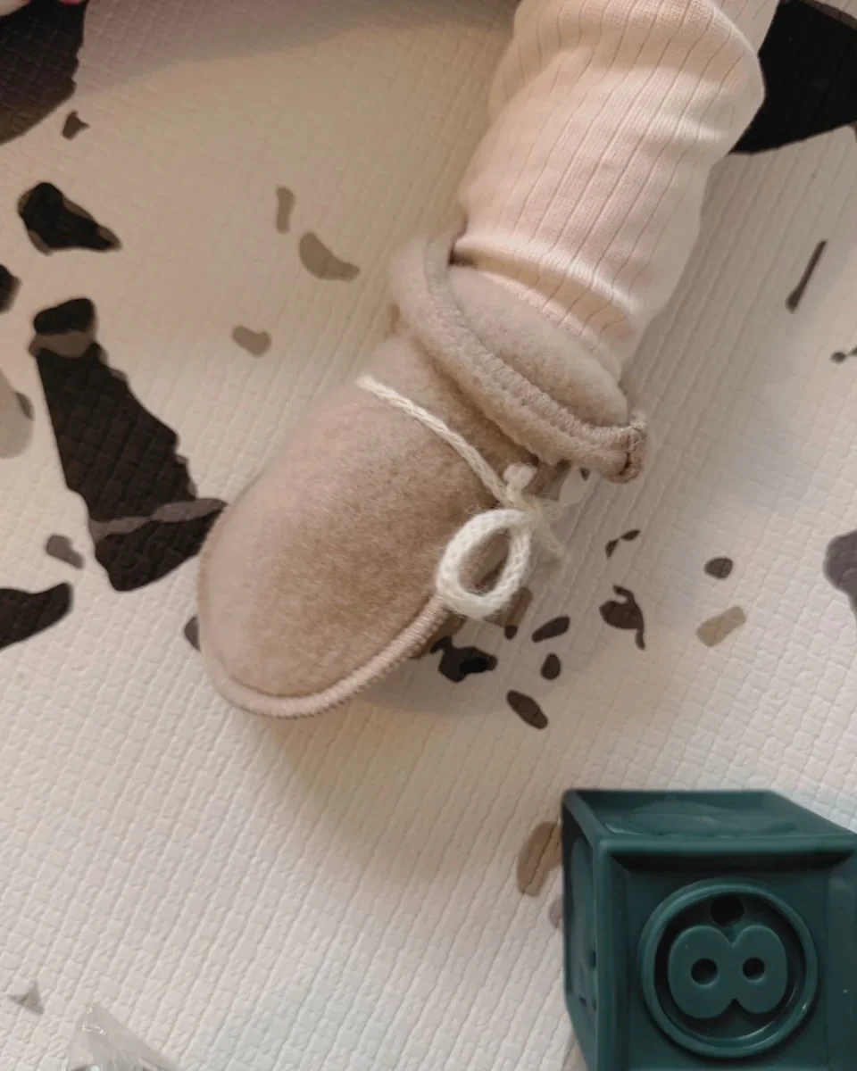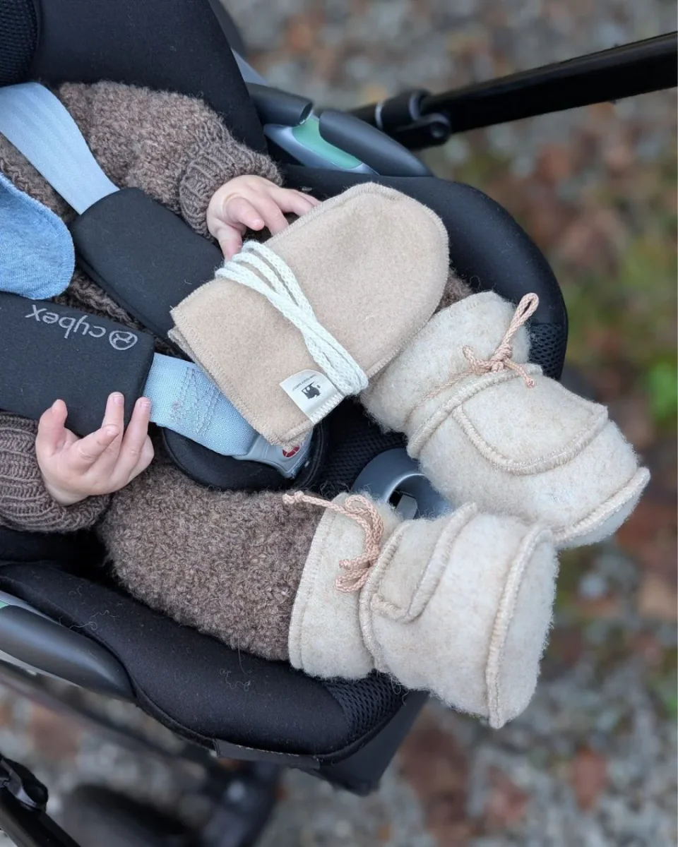 De wanten zijn verkrijgbaar in één maat, geschikt voor baby’s van 0 tot 3 maanden, en hebben een neutrale beige kleur die geschikt is voor zowel jongens als meisjes. Ze worden geproduceerd in Litouwen en zijn gecertificeerd met zowel Woolmark als OEKO-TEX®, wat garant staat voor hoge kwaliteit en het ontbreken van schadelijke stoffen.