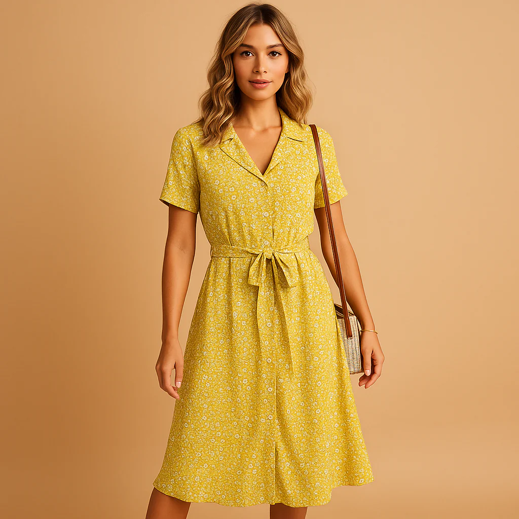 Geef je zomergarderobe een stijlvolle upgrade met Fleur, een luchtige midi-jurk met bloemenprint voor dames. Gemaakt van een ademende stof die heerlijk licht aanvoelt op warme dagen. De flatterende pasvorm en korte mouwen zorgen voor een comfortabele en vrouwelijke look. Fleur is ideaal voor casual uitstapjes, zomerse feestjes of een gezellige dag op het terras. Combineer met sandalen voor een relaxte uitstraling of met hakken voor een elegante zomerse look.