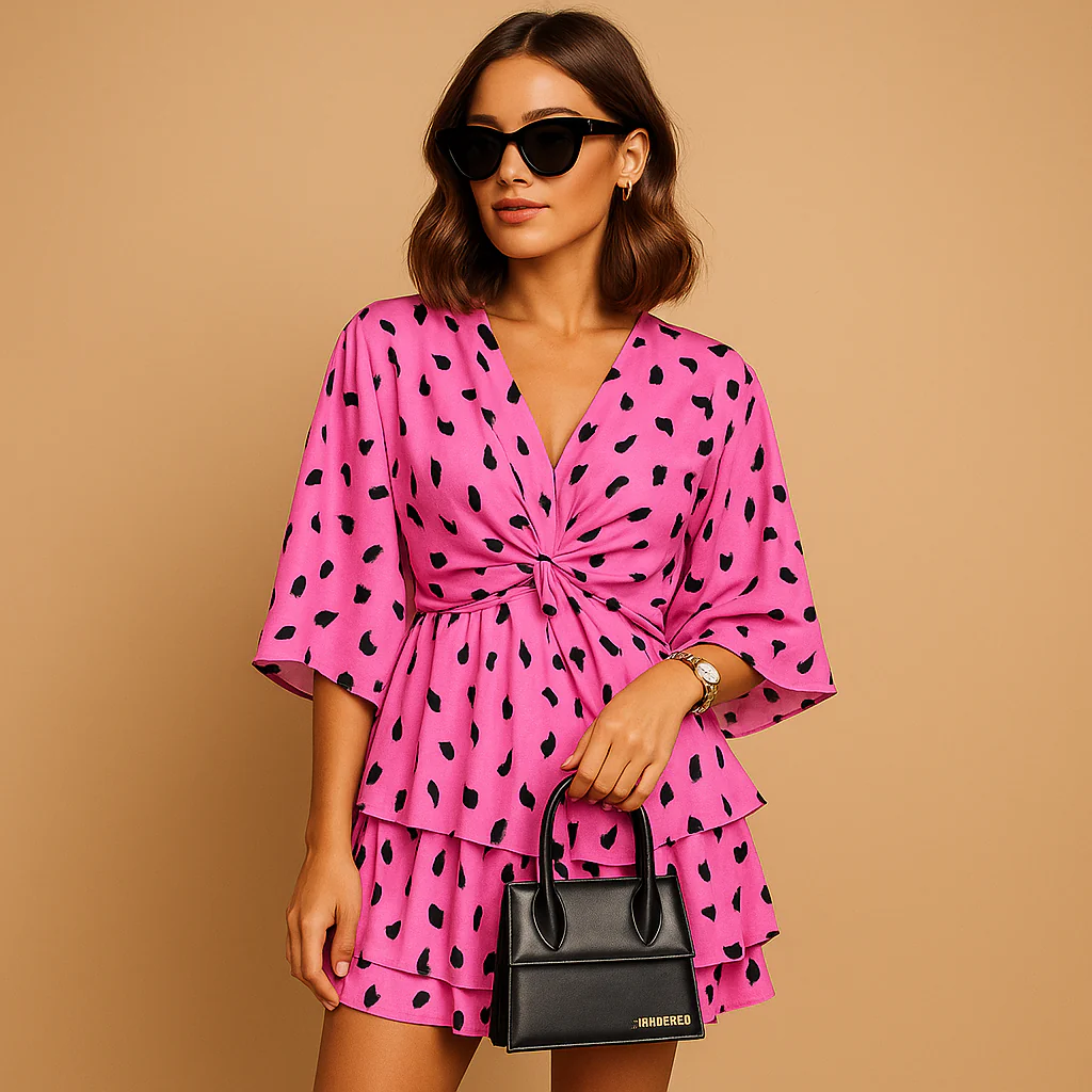 Ga voor een relaxte, zomerse look met Linde, een boho mini jurk voor dames die comfort en stijl perfect combineert. Het lichtgewicht en ademende materiaal zorgt ervoor dat je koel blijft op warme dagen, terwijl de unieke bohemian prints een opvallende en vrouwelijke uitstraling geven. Perfect voor festivals, stranduitjes of als casual zomerjurk waarmee je echt opvalt. Voeg een vleugje vrijheid en flair toe aan je garderobe met deze eyecatcher.