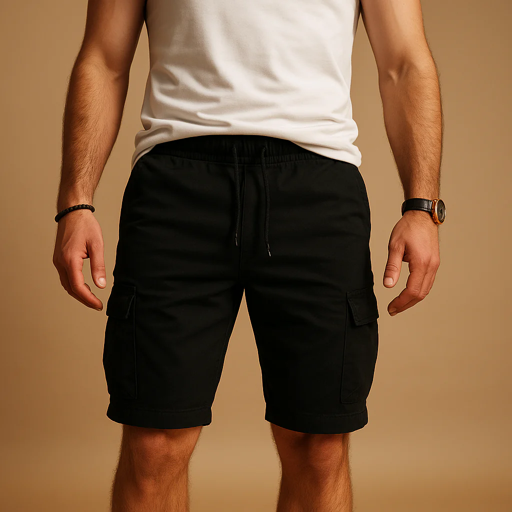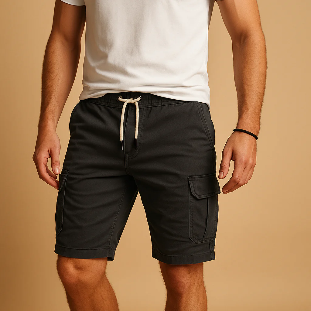 Ervaar ultiem gemak met Jelle, cargo shorts voor heren met een elastische tailleband en ademend design. Het lichtgewicht materiaal houdt je koel tijdens warme dagen, terwijl de ontspannen pasvorm zorgt voor maximale bewegingsvrijheid. Met meerdere functionele zakken zijn jouw essentials altijd veilig en binnen handbereik. Perfect voor casual outfits, outdoor avonturen of ontspannen zomermomenten.
