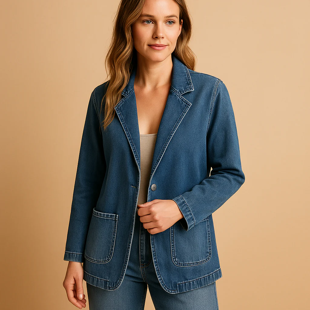 Ervaar de perfecte balans tussen klassiek en modern met Yvette, een denim blazer voor dames die moeiteloos elke outfit naar een hoger niveau tilt. Het elegante ontwerp en de getailleerde pasvorm zorgen voor een verfijnd silhouet, ideaal voor zowel zakelijke afspraken als casual gelegenheden. Deze blazer is een veelzijdige toevoeging aan je garderobe, geschikt voor elk seizoen.
