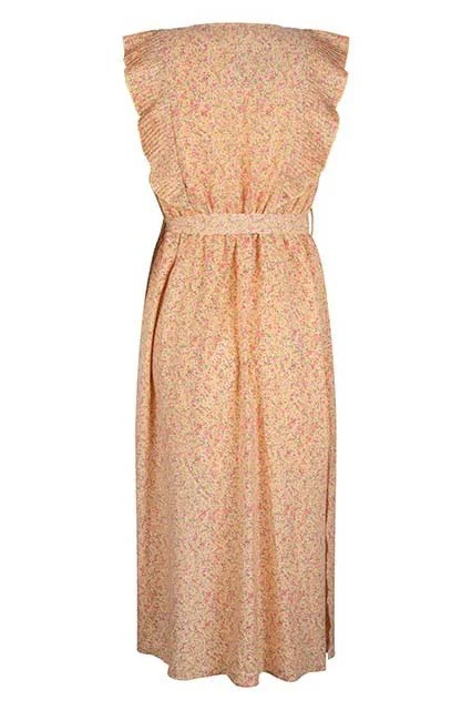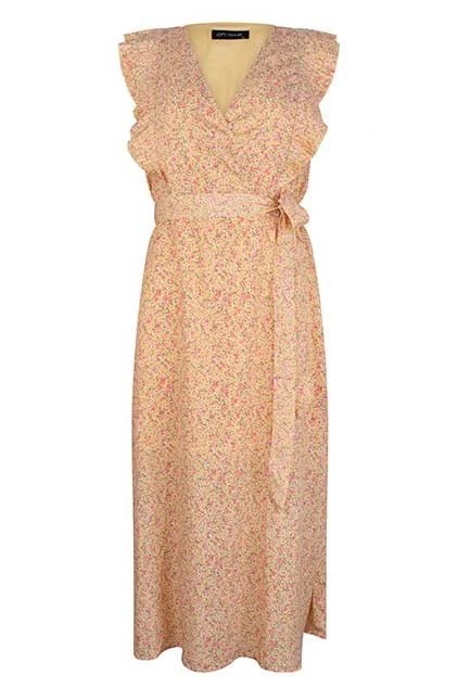 Deze prachtige lange jurk van het merk Lofty Manner is een must-have voor elke vrouw die graag stijlvol voor de dag wil komen. De jurk heeft een trendy gele kleur met een opvallend bloemendessin, wat zorgt voor een vrolijke en zomerse look. De jurk is voorzien van kapmouwtjes, een v-hals en een elegante overslag, wat zorgt voor een vrouwelijke en speelse uitstraling. Het jurkje heeft een koord in de taille, waardoor je jouw taille mooi kunt accentueren en de jurk perfect kunt laten aansluiten op jouw figuur. De jurk is gemaakt van 100% polyester, waardoor het heerlijk licht en luchtig aanvoelt. Ideaal voor warme zomerdagen! Daarnaast is de jurk voorzien van een korte onderjurk, zodat je geen last hebt van inkijk. Kortom, deze gele dessin jurk is een echte eyecatcher en mag niet ontbreken in de kledingkast van een modebewuste vrouw. Shop hem nu bij Nummer Zestien en straal zelfverzekerd en fashionable!