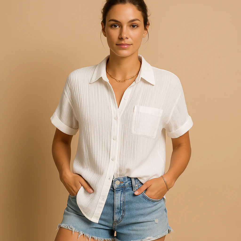 Ontdek Danique, een stijlvolle casual polo met korte mouwen voor dames die comfort en klasse combineert. De luchtige pasvorm en klassieke polokraag zorgen voor een verfijnde uitstraling zonder in te leveren op gemak. De praktische borstzak voegt een subtiele functionele touch toe, ideaal voor zomerse dagen of informele gelegenheden. Gemaakt van zacht materiaal dat prettig aanvoelt op de huid.