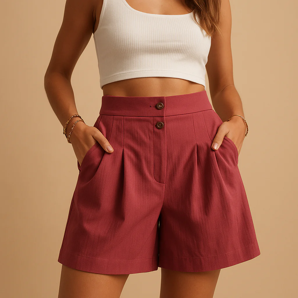 Chic comfort komt samen in Orla, een elegante korte broek voor dames met een stijlvol dubbel knoopdetail aan de voorkant. Deze short biedt een flatterende pasvorm en is ontworpen met oog voor kwaliteit, duurzaamheid en veelzijdigheid. Draag haar moeiteloos naar een brunch, tuinfeest of voor dagelijks gebruik. Gemakkelijk te combineren met elke top en accessoire voor een frisse zomerlook met klasse.