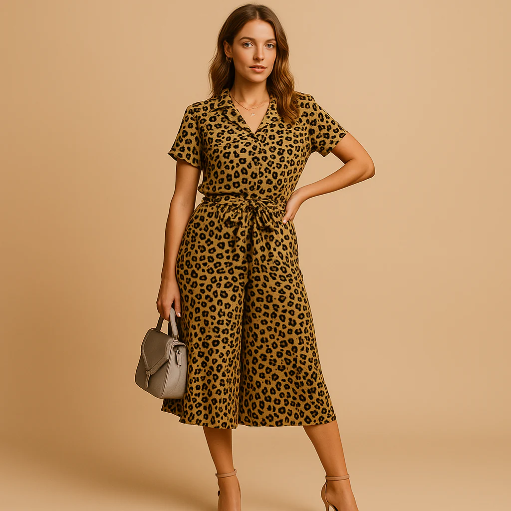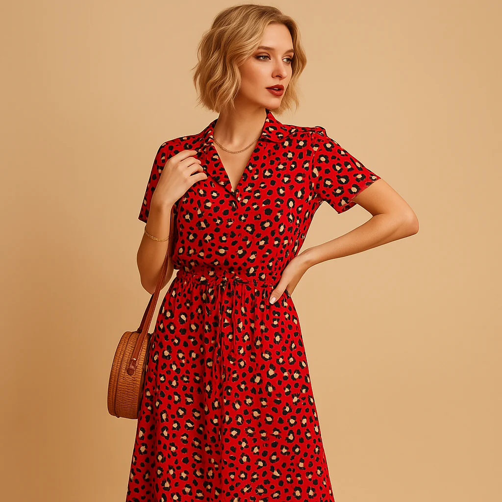 Straal moeiteloze elegantie uit met Clara, een chique midi-jurk voor dames met een flatterende pasvorm en stijlvol kort mouwontwerp. Deze jurk is perfect voor formele evenementen, een dag op kantoor of een casual uitje. De tijdloze lengte en verfijnde snit zorgen voor een zelfverzekerde en vrouwelijke uitstraling bij elke gelegenheid.