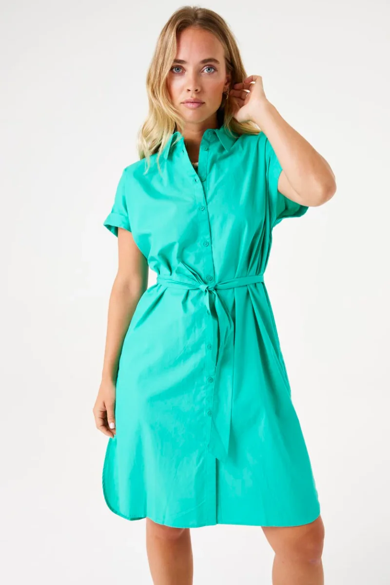 Deze prachtige groene midi jurk van het merk Garage Women is dé perfecte aanvulling op je zomergarderobe. Gemaakt van 100% katoen, zorgt deze jurk voor ultiem comfort en ademend vermogen tijdens de warmere dagen. De jurk valt tot net over de knieën en heeft een elegante en vrouwelijke pasvorm. De jurk is voorzien van korte mouwen en een V-hals, wat zorgt voor een speelse en zomerse look. De groene kleur geeft de jurk een frisse en natuurlijke uitstraling, perfect voor een dagje op het terras of een zomers feestje. Shop nu deze stijlvolle en duurzame jurk bij NummerZestien en voeg een vleugje groen toe aan je garderobe!