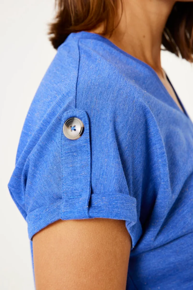 Het perfecte t-shirt voor de modebewuste vrouw! Dit kobaltkleurige t-shirt k/m dames van Garcia is een must-have voor elke kledingkast. Gemaakt van een mix van hoogwaardige materialen, waaronder 64% gerecycled polyester, 35% viscose en 1% metallic garen, is dit t-shirt niet alleen stijlvol, maar ook nog eens duurzaam. Het shirt heeft een comfortabele pasvorm en is voorzien van een subtiele glans, dankzij het gebruik van metallic garen. Combineer dit t-shirt met je favoriete jeans voor een casual look of draag het met een rok en hakken voor een meer geklede uitstraling. Bestel nu en voeg een uniek en trendy item toe aan je garderobe!