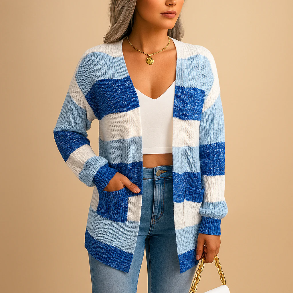 Maak een statement met Renée, een geruite damescardigan met pofmouwen die klassiek patroon en moderne flair samenbrengt. De slanke pasvorm en opvallende mouwen zorgen voor een krachtige uitstraling die ideaal is voor dagelijks gebruik of een stijlvolle laagjeslook. Combineer Renée met jeans, rokken of leggings en geef je outfit direct een modieuze twist. Een onmisbaar kledingstuk voor vrouwen die houden van elegant contrast.