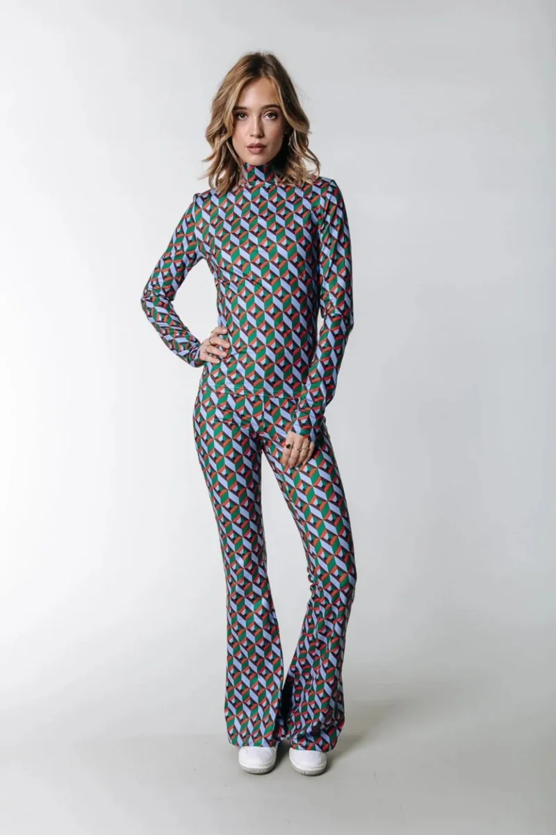 Deze multicolor lange broek voor dames van het merk Colourful Rebel is een echte blikvanger in jouw kledingkast. Het model, genaamd Graphic Peached, is voorzien van een elastische tailleband voor een comfortabele pasvorm. De broek is gemaakt van 87% polyester en 13% elastaan, wat zorgt voor een zacht en soepel vallend materiaal. Het allover grafische dessin geeft de broek een speelse en trendy uitstraling. Perfect om te combineren met een basic top en sneakers voor een casual look, of juist met hakken en een blouse voor een meer geklede outfit. Met deze lange flared broek laat jij zeker weten je eigen stijl zien. Shop hem nu bij Nummerzestien en steel de show!
