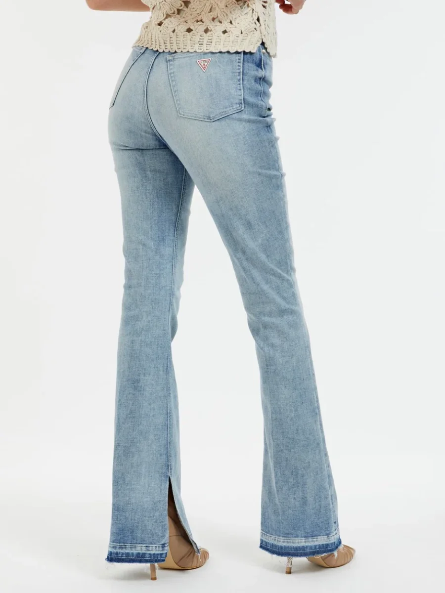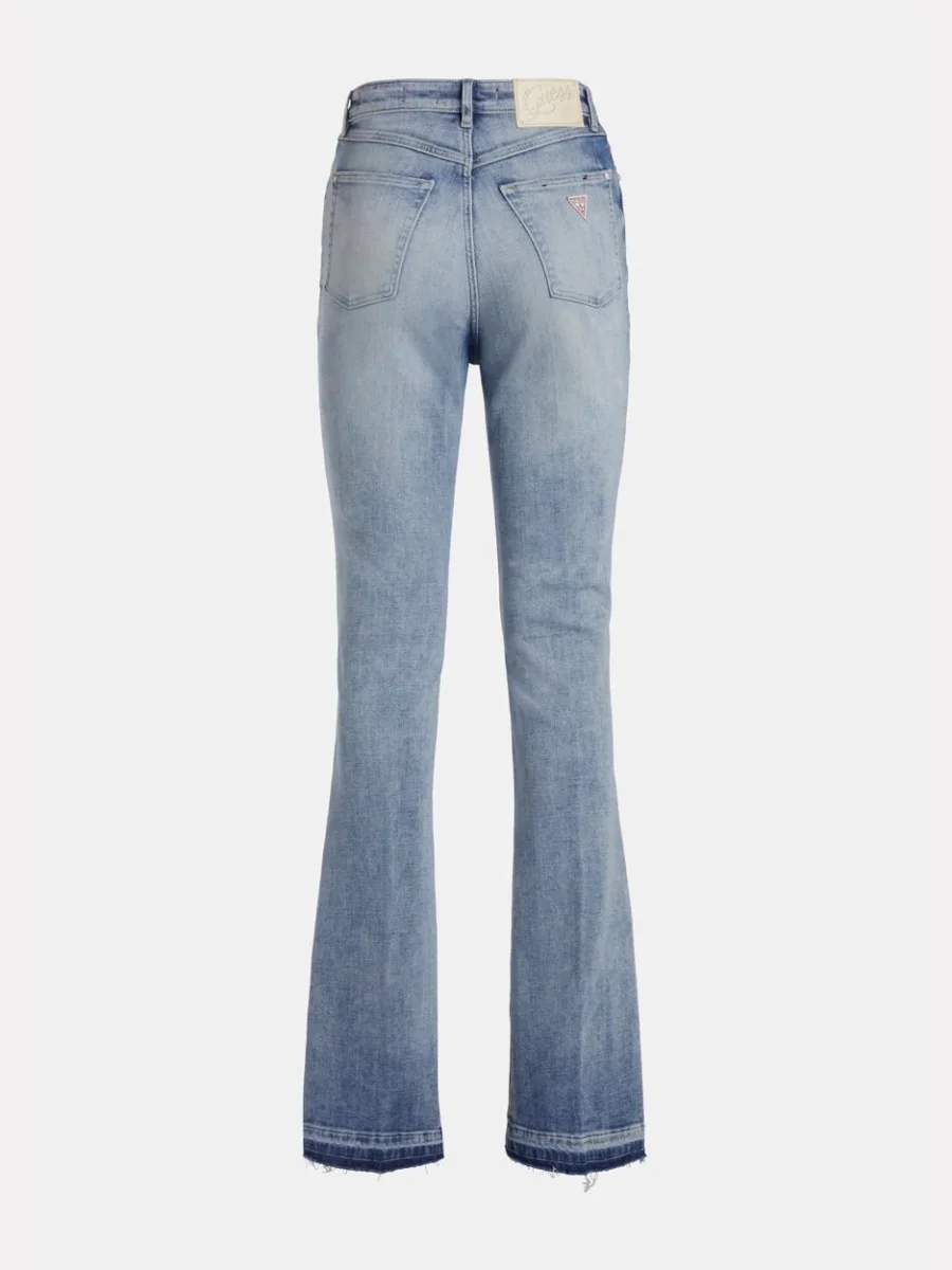 De flared is gemaakt van hoogwaardig stretchkatoen, waardoor de jeans super comfortabel zit en mooi aansluit op je lichaam. Het materiaal bestaat uit 95% katoen, 4% elastaan en 1% spandex. De achterzak is voorzien van een stijlvol Guess logo, wat zorgt voor een extra touch aan deze trendy jeans.