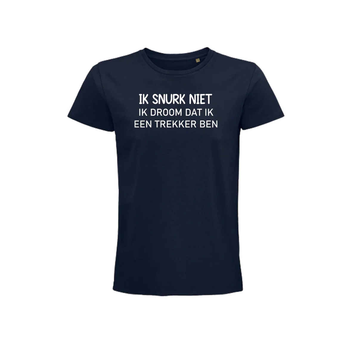 De IK SNURK NIET t-shirt van The Farmer is verkrijgbaar in de kleur zwart en blauw. De t-shirt is voorzien van een bedrukking op de borst. Wij hebben gekozen voor hoge kwaliteit t-shirts van 175 g/m² en deze hebben we uitvoerig getest. Daarom ontvangen deze t-shirts van ons het “farmer proof” keurmerk!