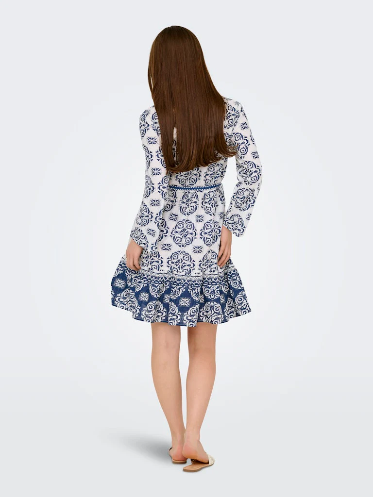 Deze prachtige korte damesjurk in het blauwe dessin van het merk Jacqueline de Yong zal zeker een favoriet worden in jouw garderobe! Gemaakt van een combinatie van 80% viscose en 20% linnen, is deze jurk niet alleen stijlvol, maar ook comfortabel om te dragen. Het dessin van de jurk geeft een speels en vrolijk effect, perfect voor een zomerse dag of een feestelijke gelegenheid. De jurk heeft een flatterende pasvorm en valt net boven de knie, met een mooie ronde halslijn en korte mouwen. Combineer deze jurk met een slippertje en een zonnebril voor een zomerse look, of draag het met een paar hakken en sieraden voor een chique avondoutfit. Bestel deze prachtige blauwe dessin jurk nu bij nummerzestien en voeg een vleugje vrolijkheid en stijl toe aan jouw kledingkast!