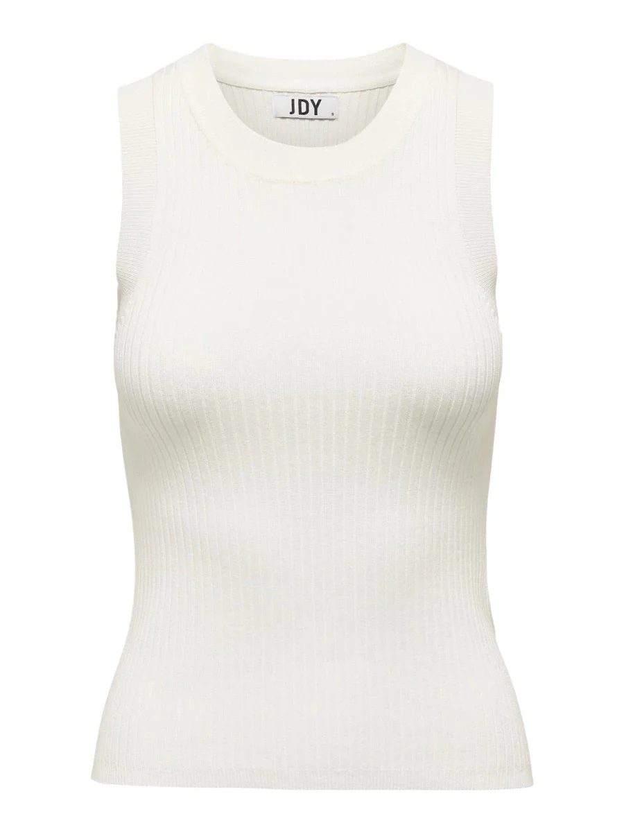 Deze top van Jacqueline de Yong is een must-have voor elke vrouw. Met zijn prachtige off-white kleur en klassieke design is deze tanktop perfect voor elke gelegenheid. De top heeft een ronde hals en een stijlvolle allover streepstructuur, wat zorgt voor een speelse en trendy uitstraling. Gemaakt van 80% viscose en 20% nylon, biedt deze top een comfortabele pasvorm en een luxe gevoel op de huid. Combineer het met je favoriete jeans en sneakers voor een casual look, of draag het met een stijlvolle rok en hakken voor een chique outfit. Bestel nu deze prachtige off-white top van Jacqueline de Yong en geef je kledingkast een trendy upgrade!