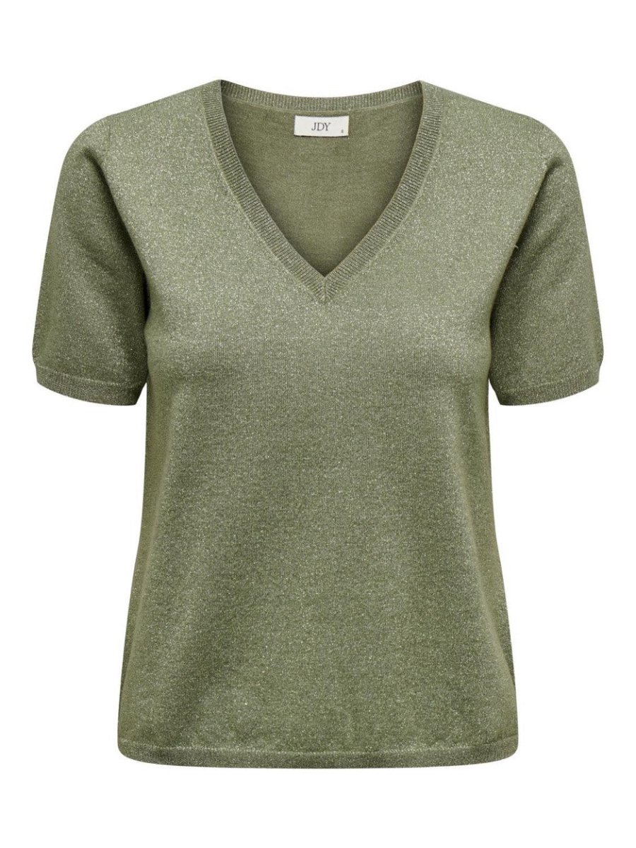 Verrijk je garderobe met dit trendy olijfkleurige t-shirt van Jacqueline de Yong. Dit stijlvolle shirt is perfect voor elke gelegenheid en kan zowel casual als chic gedragen worden. De top is voorzien van een subtiele glitter, wat zorgt voor een speels effect. Gemaakt van hoogwaardige materialen, waaronder 40% viscose, 24% metallic vezels, 21% polyester en 15% nylon, voelt dit shirt zacht en comfortabel aan op de huid. Combineer het met je favoriete jeans en sneakers voor een casual look of draag het met een rok en hakken voor een elegante uitstraling. Bestel nu dit prachtige JDY Beauty t-shirt en voeg meteen een vleugje glamour toe aan je outfits!