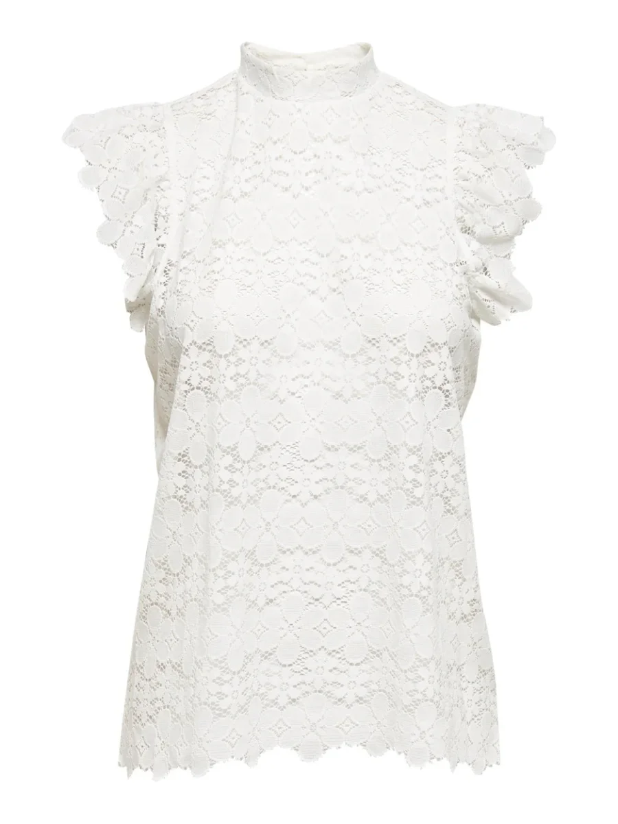Deze off-white top is ideaal voor de lente en zomer, maar kan het hele jaar door gedragen worden door de neutrale kleur. De kanten details maken de top extra bijzonder en geven het een romantische uitstraling.