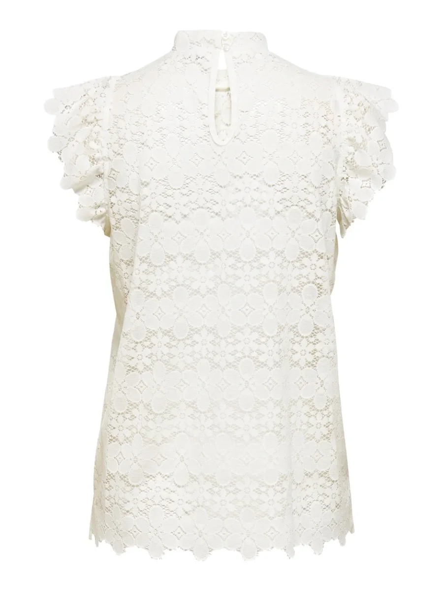 De top is gemaakt van hoogwaardig materiaal, namelijk 100% polyester. Dit zorgt ervoor dat de top comfortabel zit en een luxe uitstraling heeft. De gewelfde kapmouwtjes en de hoge hals geven de top een elegante en vrouwelijke touch.