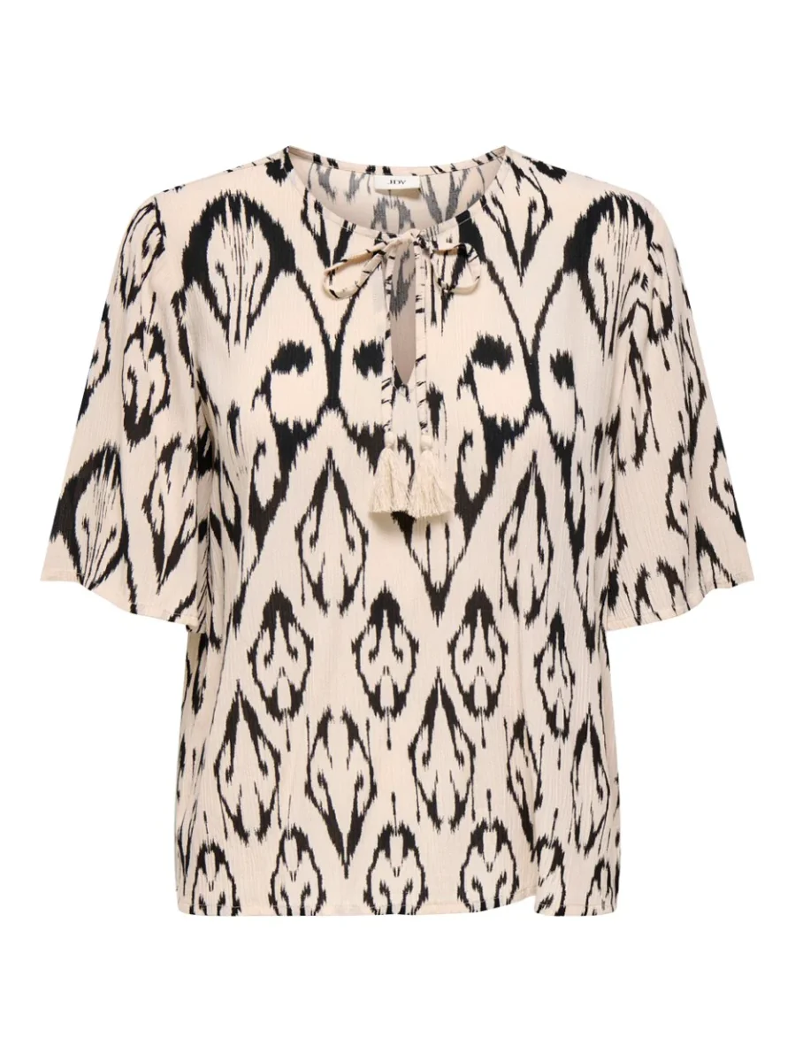 Deze ecru dessin kleurige top van Jacqueline de Yong is een must-have voor elke damesgarderobe. Gemaakt van een luchtige en comfortabele 100% viscose stof, zorgt deze top voor een perfecte pasvorm en draagcomfort. De subtiele dessin geeft de top een speelse en vrouwelijke uitstraling. De top heeft korte mouwen en een ronde hals, perfect voor de warmere dagen. Draag de top op een jeans voor een casual look of combineer het met een rok voor een chique uitstraling. Met deze top ben je klaar voor elke gelegenheid. Bestel nu en voeg deze stijlvolle top toe aan je collectie!