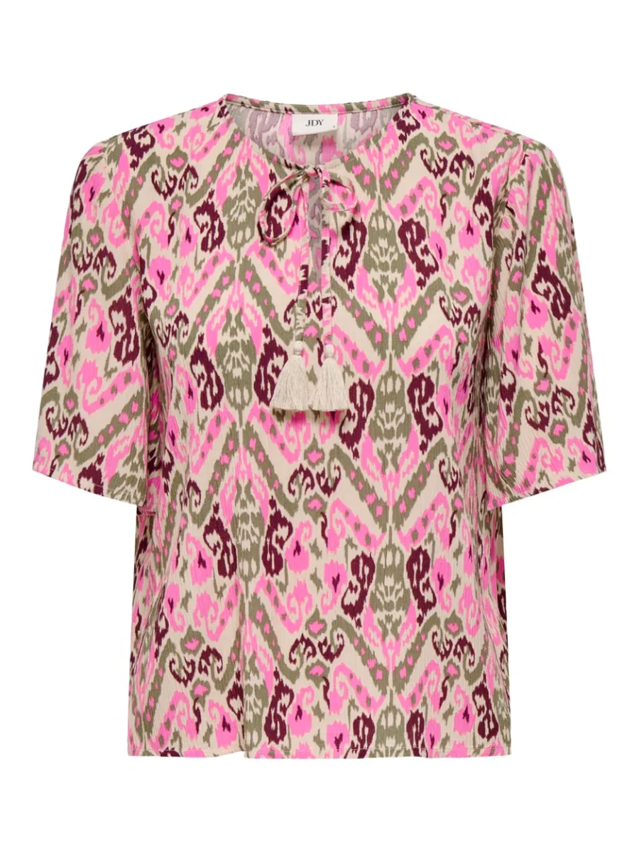 Deze roze jacqueline de yong top is de perfecte toevoeging aan jouw kledingkast! Het kleurrijke dessin geeft een frisse en vrouwelijke uitstraling aan elke outfit. Deze top is gemaakt van 100% viscose, wat zorgt voor een comfortabele en luchtige pasvorm. De top is ideaal voor warme zomerdagen, maar kan ook gedragen worden met een jasje eroverheen voor een meer geklede look. De top heeft korte mouwen en een ronde hals, waardoor het geschikt is voor elke gelegenheid. Draag het op een mooie jeans of combineer het met een rok voor een trendy look. Deze top is een must-have voor elke fashionista! Bestel nu deze roze dessin top van jacqueline de yong en creëer eindeloos veel outfits.