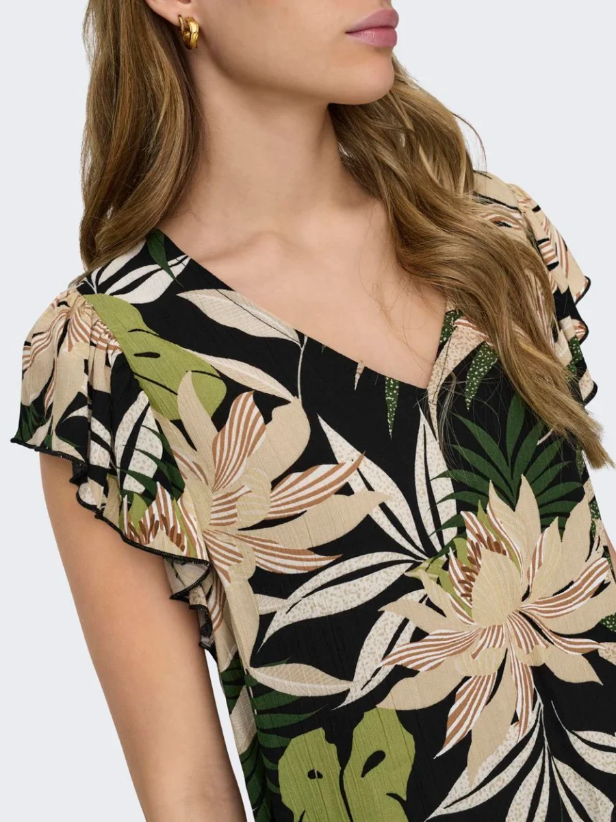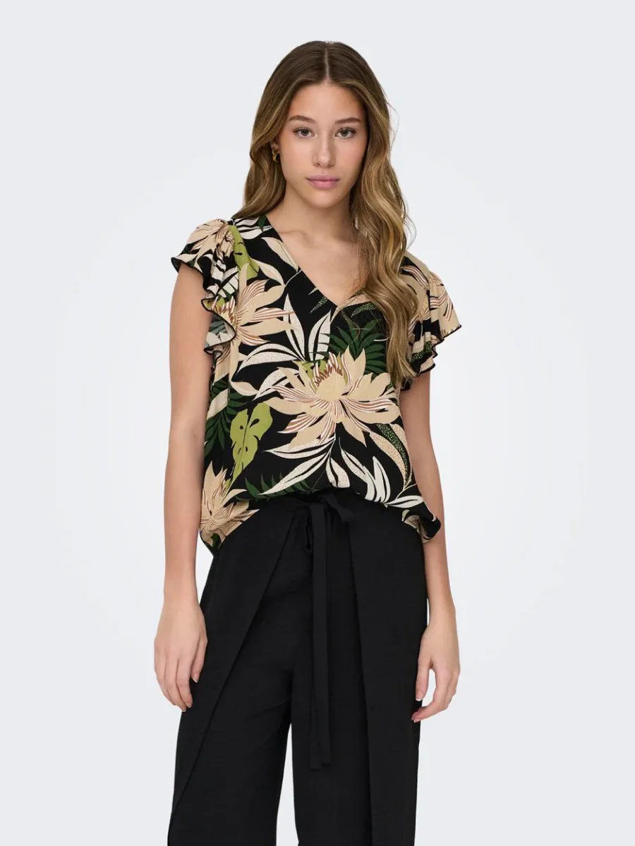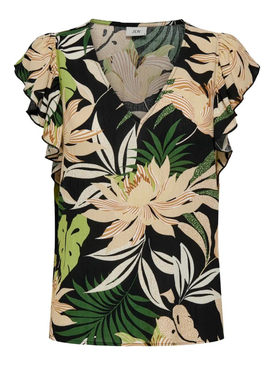 Deze prachtige zwarte top met dessin is een must-have voor elke fashion forward dame. Het is gemaakt van 100% viscose, wat zorgt voor een zachte en comfortabele pasvorm. Deze top van het trendy merk Jacqueline de Yong geeft elke outfit een stoere en speelse touch. Het dessin voegt een uniek element toe aan de klassieke zwarte kleur en maakt dit item een echte eyecatcher. Draag deze top met korte mouwen op een mooie jeans voor een casual look of combineer het met een rok voor een meer geklede outfit. Hoe dan ook, met deze top ben je altijd on-trend. Shop deze zwart dessin top nu bij Nummer Zestien en voeg een edgy touch toe aan jouw garderobe!