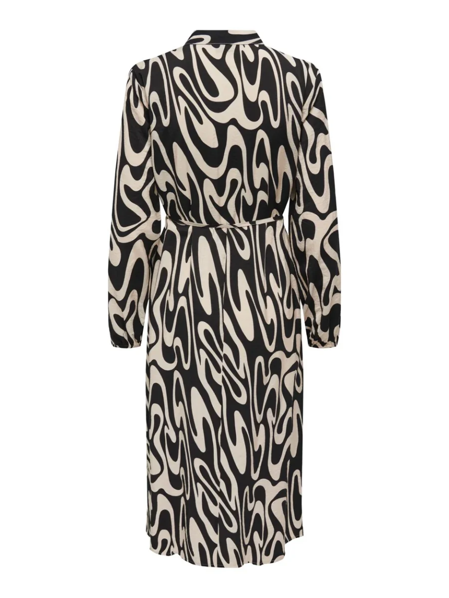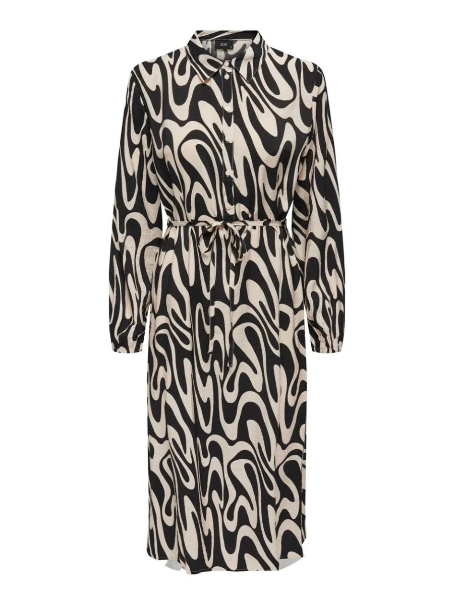 De perfecte jurk voor iedere gelegenheid: de JDY Camille midi shirt dress van het populaire merk Jacqueline de Yong is een must-have voor elke vrouw. Deze elegante jurk heeft een prachtig zwart dessin met een al-over abstract motief, wat zorgt voor een trendy en moderne uitstraling. De jurk is gemaakt van hoogwaardig materiaal, bestaande uit 85% viscose en 15% nylon, wat zorgt voor een comfortabele pasvorm en een luxueuze uitstraling.