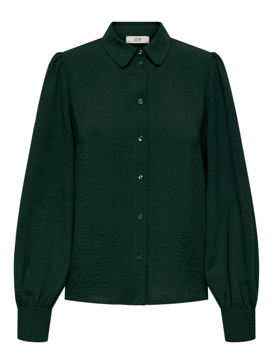 Deze stijlvolle blouse van Jacqueline de Yong is een must-have voor elke moderne vrouw. De diepe, donkergroene kleur geeft een chique en tijdloze uitstraling aan elke outfit. Gemaakt van een combinatie van 51% gerecycled polyester en 49% polyester, is deze blouse niet alleen modieus, maar ook milieubewust. De blouse heeft lange mouwen en een klassieke kraag, wat zorgt voor een elegante look. Perfect te combineren met een mooie high-waisted jeans voor een casual look, of met een strakke rok voor een formele gelegenheid. Kortom, deze blouse is een veelzijdige toevoeging aan je garderobe!