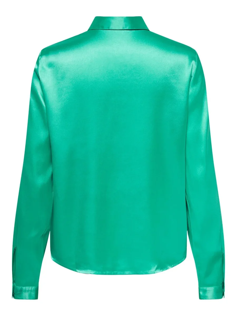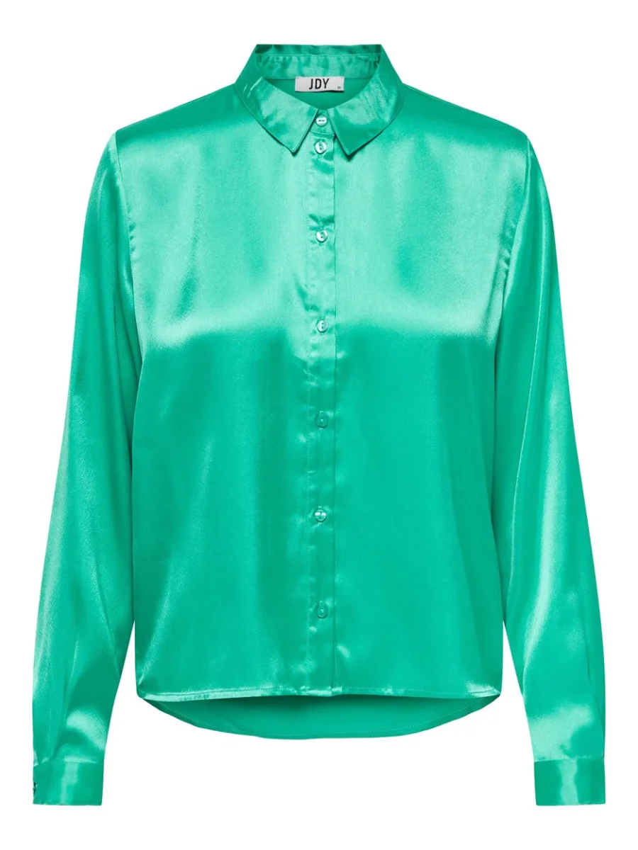 Deze prachtige aqua kleurige blouse met lange mouwen van het merk Jacqueline de Yong is perfect voor iedere gelegenheid. De blouse is gemaakt van zacht satijn en voelt daardoor heerlijk comfortabel aan op de huid. De voorzijde is voorzien van een klassieke knoopsluiting, terwijl de achterzijde langer valt voor een speels effect. De perfecte combinatie van elegantie en speelsheid.