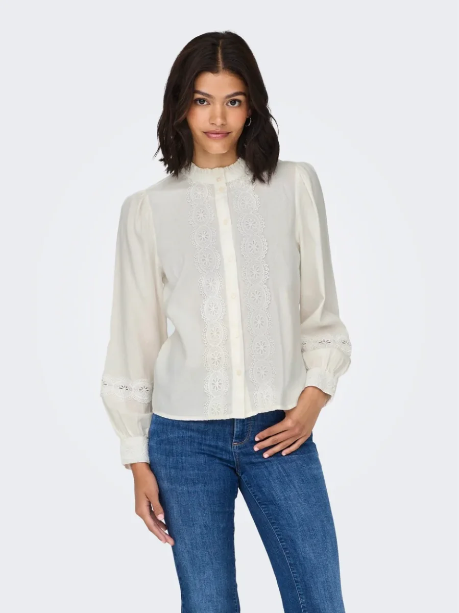 Deze elegante off-white blouse van Jacqueline de Yong is een must-have voor elke fashionista. Gemaakt van 100% katoen, voelt deze blouse zacht en comfortabel aan op de huid. Met zijn lange mouwen is deze blouse perfect voor elk seizoen en elke gelegenheid. Het tijdloze design, gecombineerd met de klassieke kraag en knoopsluiting, zorgen voor een stijlvolle en vrouwelijke uitstraling. Draag deze blouse op een mooie rok voor een chique look, of combineer het met een jeans voor een casual maar toch trendy outfit. Laat jezelf stralen in deze prachtige blouse van Jacqueline de Yong, verkrijgbaar bij nummerzestien!