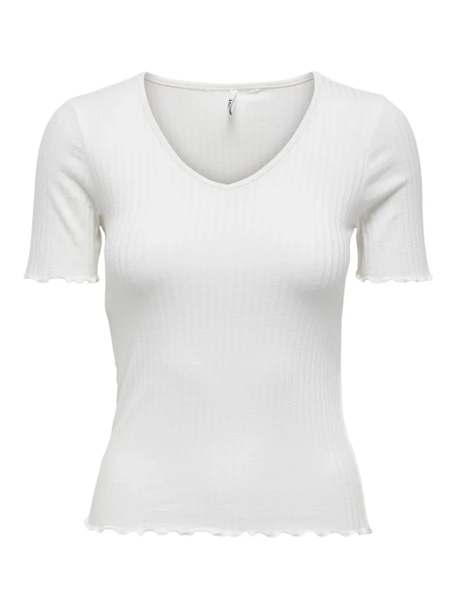 Dit prachtige off-white t-shirt van Jacqueline de Yong is een must-have voor elke dame! Het is gemaakt van hoogwaardige materialen, namelijk 53% viscose, 22% viscose circulose® van renewcell, 20% katoen en 5% elastaan. De combinatie van deze materialen zorgt voor een comfortabele en zachte fit, terwijl de elastaan er voor zorgt dat het shirt mooi aansluit op je lichaam. De subtiele V-hals geeft het t-shirt een vrouwelijke touch en maakt het perfect voor elke gelegenheid. Of je nu gaat voor een casual look of juist iets meer dressed up, dit t-shirt is de perfecte basis. Shop nu dit trendy en duurzame t-shirt en laat je verrassen door het comfort en de stijlvolle uitstraling ervan.
