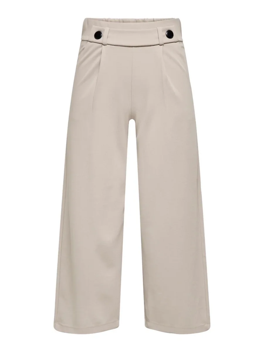 Deze prachtige lange broek is onmisbaar in de garderobe van elke vrouw! De JDY pantalon is uitgevoerd in een opvallende kit kleur, waardoor je alle aandacht naar je toe trekt. De wijde pijpen zorgen voor een chique en vrouwelijke uitstraling, terwijl de elastische tailleband zorgt voor optimaal comfort. De pantalon is afkomstig van het populaire merk Jacqueline de Yong en staat bekend om haar modieuze en betaalbare kleding voor dames.