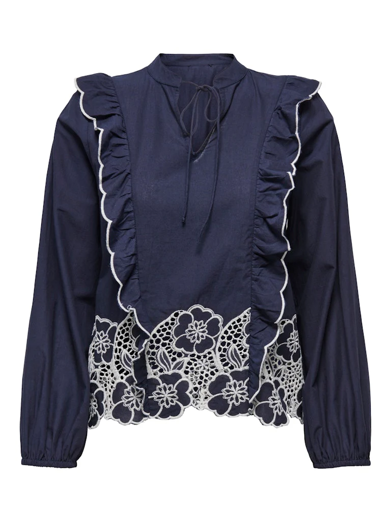 Jdyholly L/s Emb Top Wvn Exp – Blauw