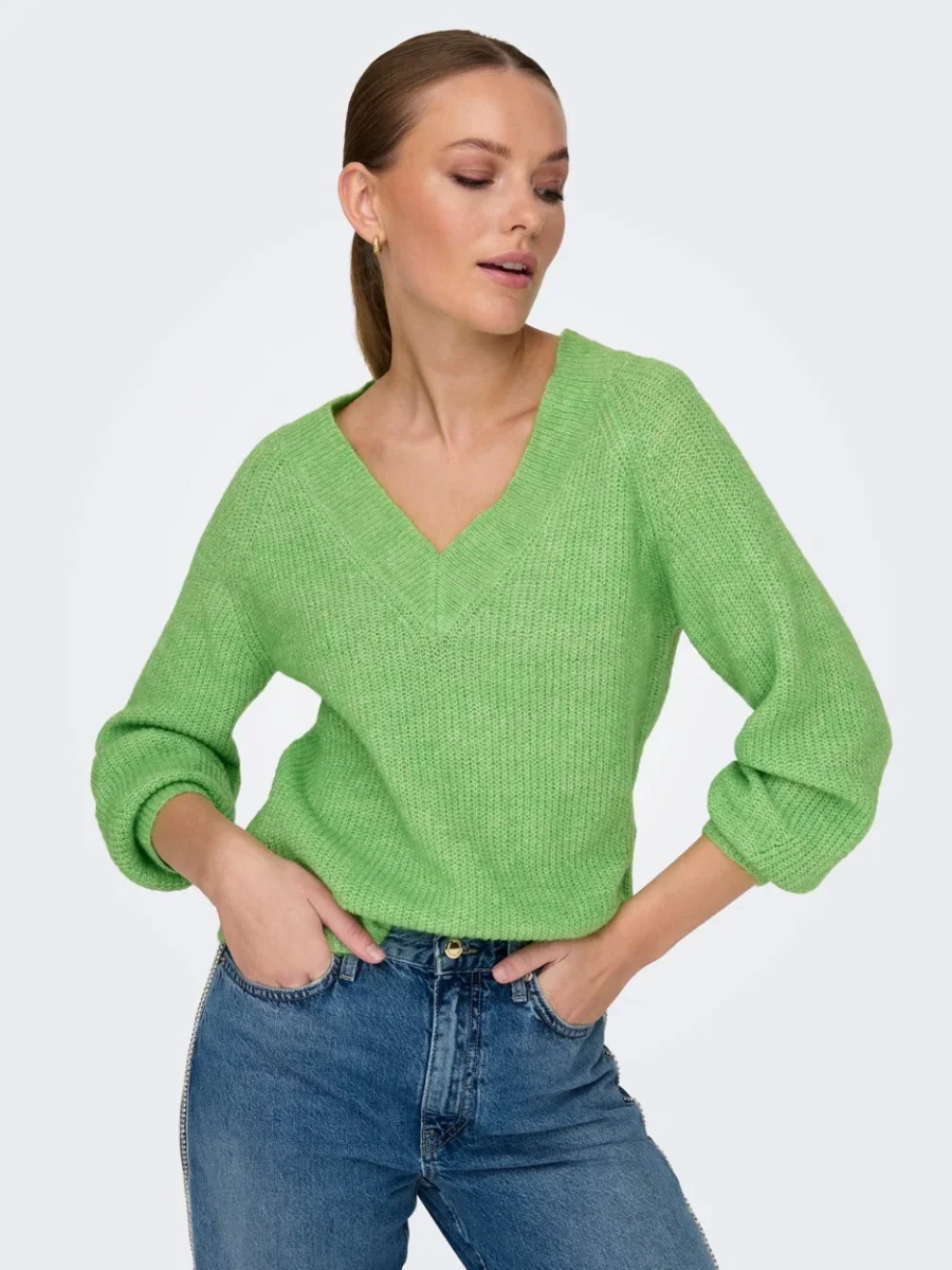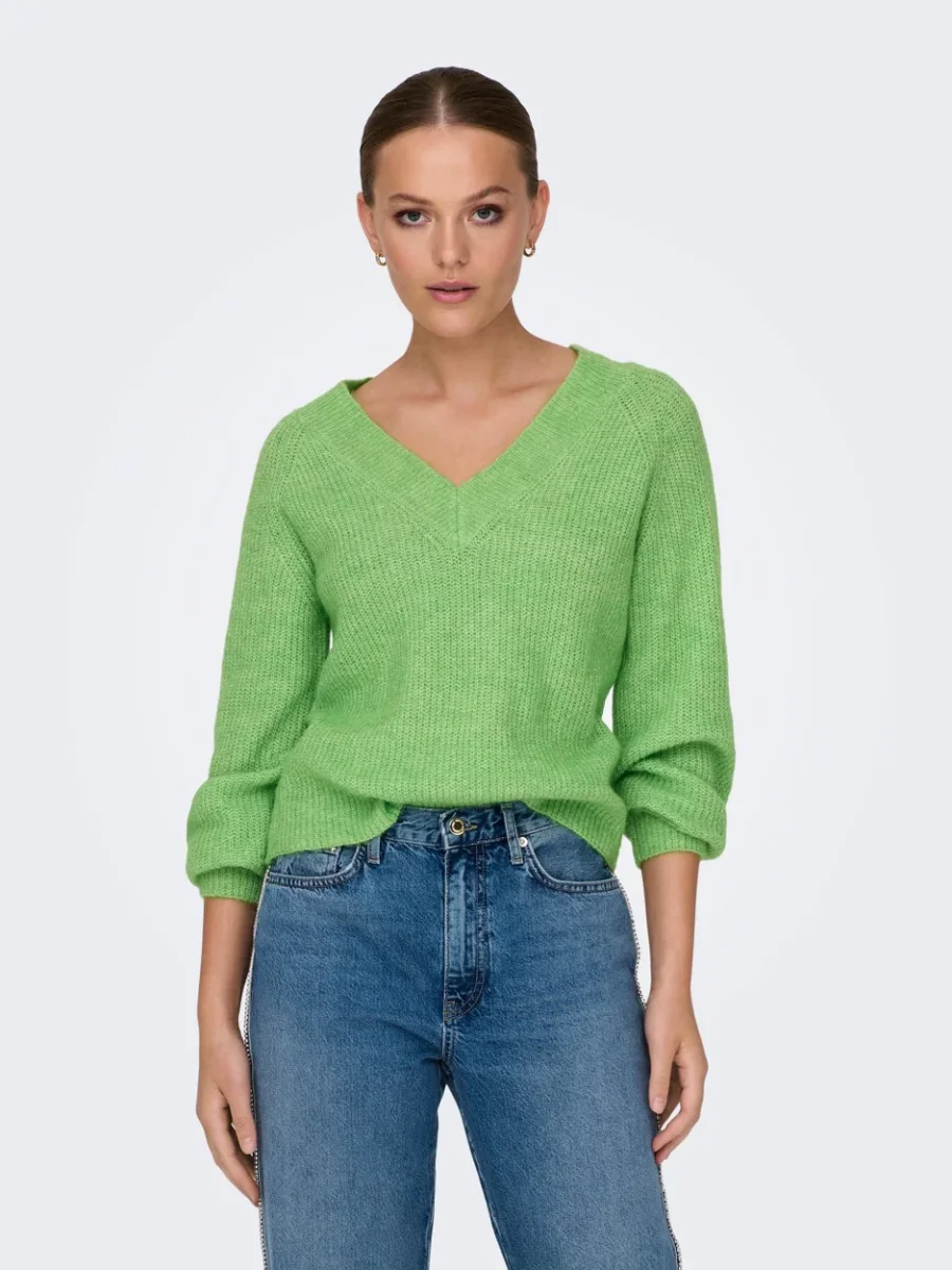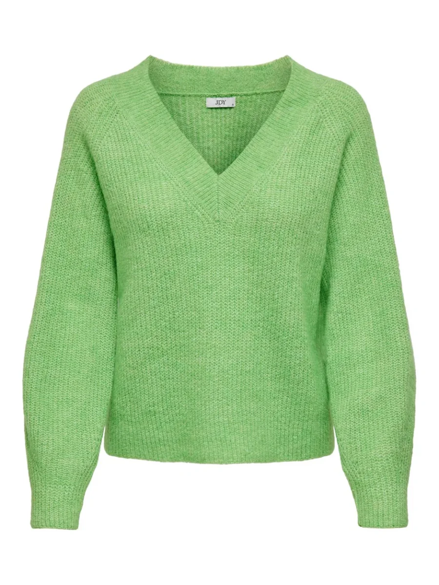 Maak je klaar voor het najaar met de JDY Ingeborg pullover van het duurzame merk Jacqueline de Yong. Deze groene trui voor dames is een absolute must-have voor je herfst- en wintergarderobe. Met lange mouwen en een elegante v-hals heeft de pullover een tijdloze uitstraling die perfect past bij elke gelegenheid.