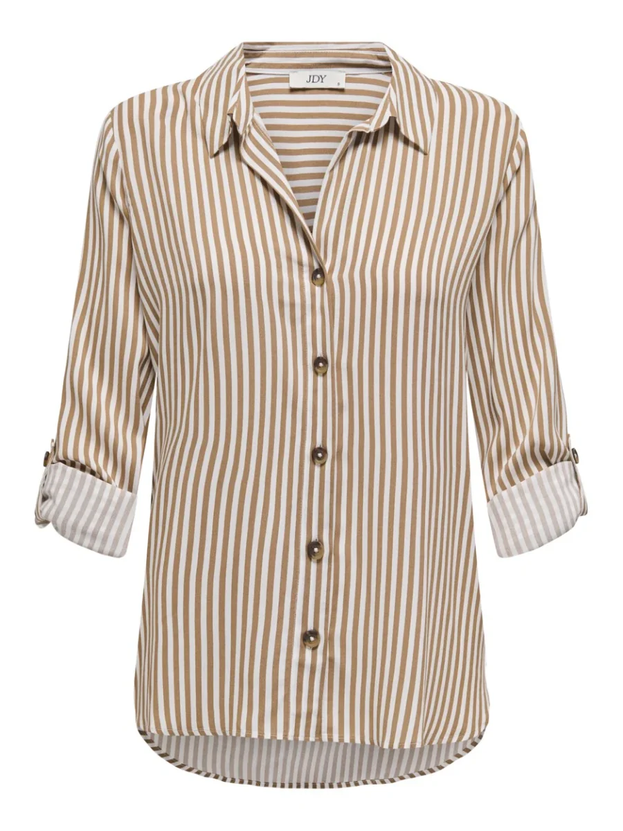 Deze prachtige blouse van het merk Jacqueline de Yong is de perfecte aanvulling op je kledingkast. De blouse heeft een bruin dessin, wat zorgt voor een speelse en trendy uitstraling. De blouse is gemaakt van 100% lenzing ecoverot viscose, waardoor hij niet alleen zacht en comfortabel aanvoelt, maar ook nog eens duurzaam is voor het milieu. Deze blouse is perfect voor elk seizoen, met lange mouwen voor de wat koudere dagen en een luchtige stof voor de warmere dagen. De perfecte keuze voor elke modebewuste vrouw! Bestel nu snel en gemakkelijk deze blouse in onze kledingwebshop nummerzestien.