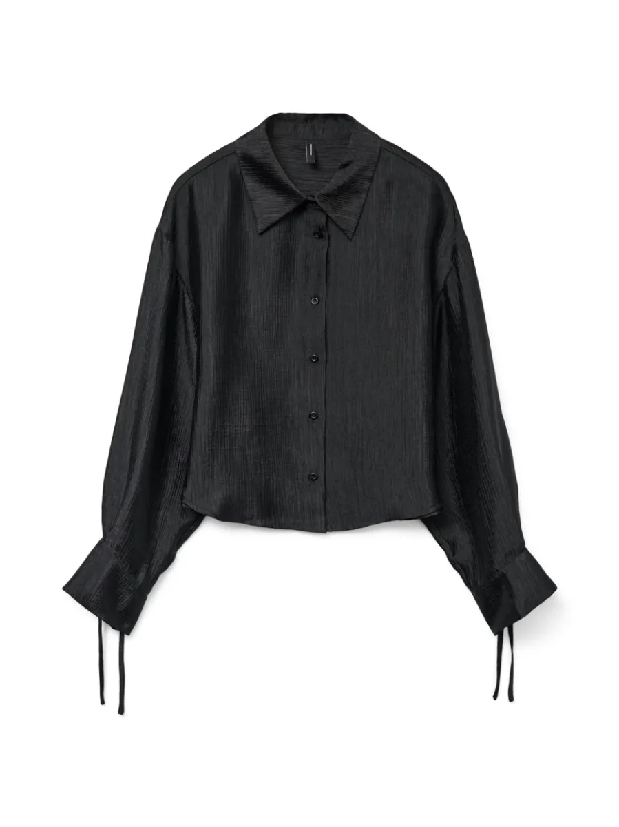 Ga voor een tijdloze look met deze prachtige zwarte blouse van Vero Moda. De blouse heeft lange mouwen en is gemaakt van een zachte en comfortabele stof van 97% polyester en 3% elastaan. Dit zorgt voor een perfecte pasvorm en een soepele valling. De blouse is voorzien van een klassieke kraag en sluit met knoopjes aan de voorkant. Hierdoor kun je zelf bepalen hoe hoog of laag je de blouse wilt dragen. De mouwen kunnen eventueel ook opgerold worden voor een nonchalante look. Deze veelzijdige blouse is een must-have voor elke vrouw. Draag hem naar kantoor met een pantalon en hakken, of casual met een jeans en sneakers. Bestel nu deze stijlvolle zwarte blouse en creëer eindeloos veel outfits!