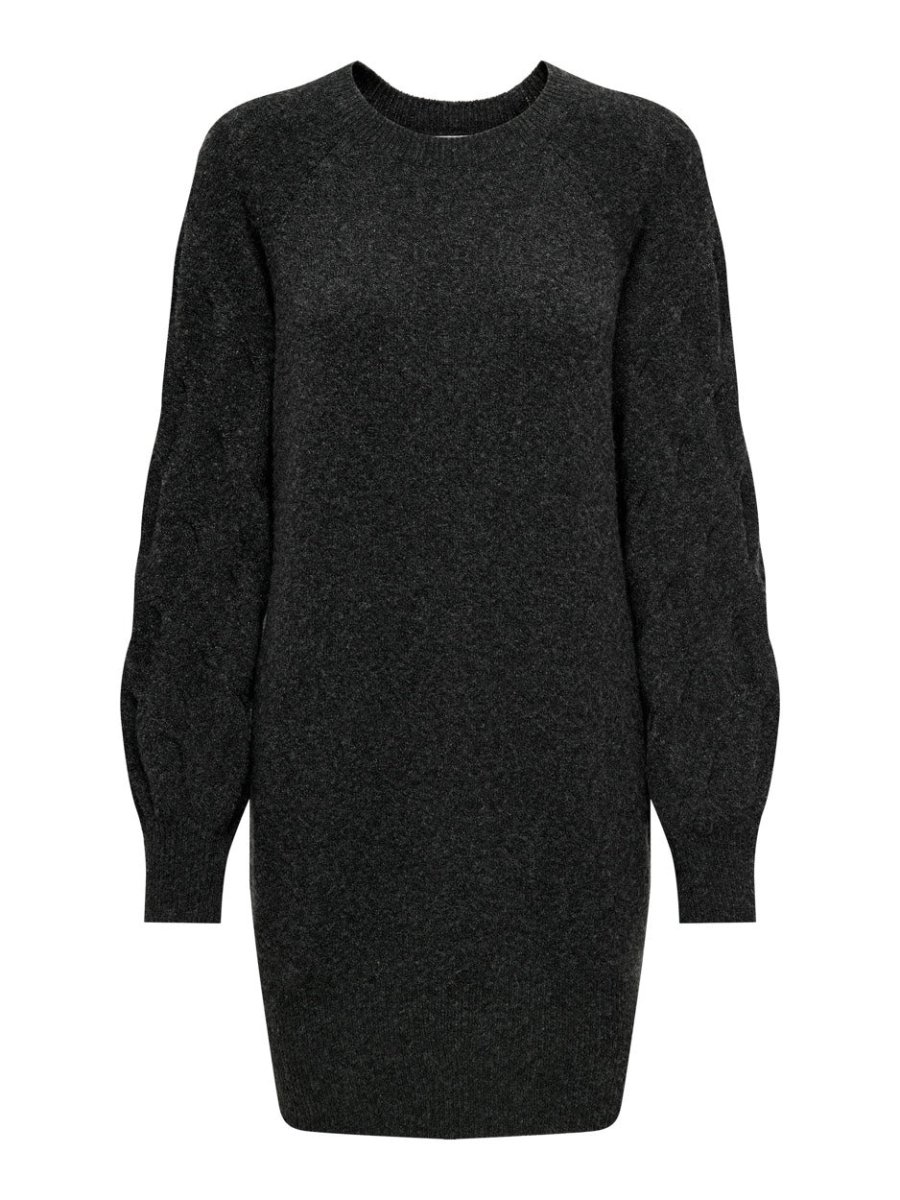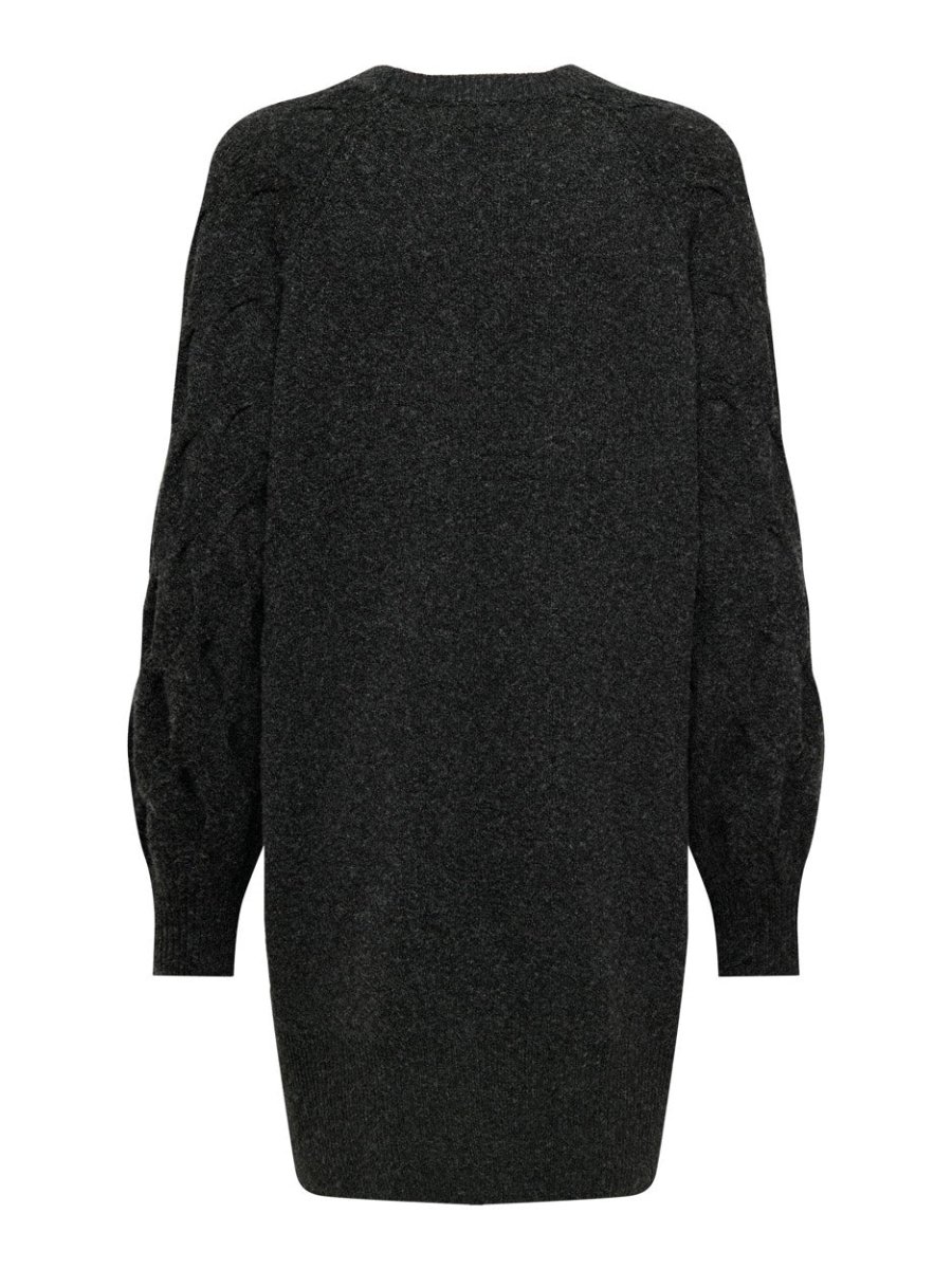 Deze antracietkleurige trui dames van Jacqueline de Yong is een must-have voor iedere modebewuste vrouw. Deze gebreide midi jurk, model Max, heeft een elegante ronde hals en een vleermuis mouw met een opvallend motiefje erop. De brede boord aan de onderzijde geeft de jurk een speelse touch. De neutrale antraciet kleur maakt deze trui geschikt voor elke gelegenheid en is makkelijk te combineren.