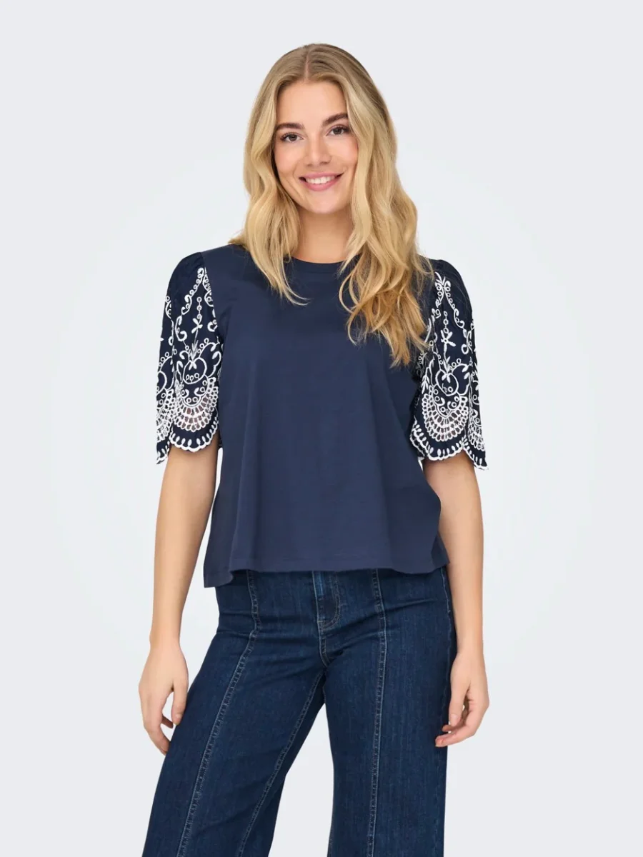 Dit navy kleurige t-shirt k/m dames van jacqueline de yong is een absolute must-have voor je kledingkast. Het is gemaakt van 100% katoen, wat ervoor zorgt dat het shirt heerlijk zacht en comfortabel aanvoelt op je huid. Bovendien zorgt het katoen voor een ademend effect, waardoor je ook op warme dagen koel en fris blijft. De trendy kleur en het vrouwelijke model maken dit shirt perfect voor elke gelegenheid. Draag het op een casual dag met je favoriete jeans en sneakers, of combineer het met een rokje en hakken voor een chique uitstraling. Met dit navy kleurige t-shirt k/m dames van jacqueline de yong steel je gegarandeerd de show! Bestel nu en heb binnen no-time deze must-have in huis.