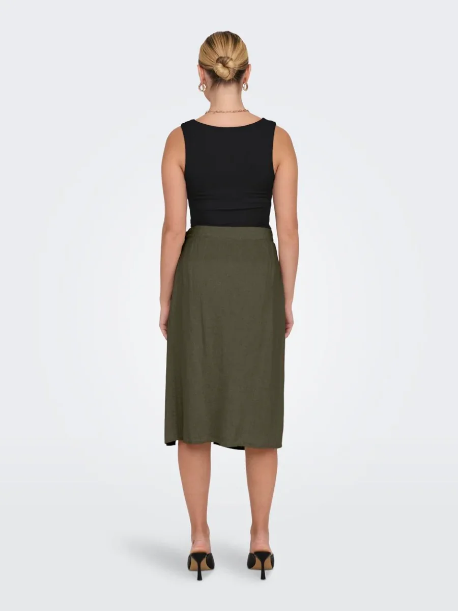 Haal een vleugje elegantie in je kledingkast met deze prachtige donkergroene midi rok voor dames van Jacqueline de Yong. De rok is gemaakt van een heerlijk zacht en licht materiaal, bestaande uit 55% linnen en 45% viscose. Hierdoor voelt de rok niet alleen comfortabel aan, maar heeft het ook een luxe uitstraling. De rok valt tot op de kuit en heeft een flatterende A-lijn vorm die zorgt voor een vrouwelijk silhouet. De subtiele plooien en de speelse knoopdetail aan de voorzijde voegen een trendy touch toe aan het ontwerp. Draag deze veelzijdige rok casual met een T-shirt en sneakers of chique met een blouse en hakken. Hoe je het ook combineert, de donkergroene kleur past bij elke gelegenheid en geeft je outfit een stijlvolle touch. Haal deze must-have midi rok nu in huis en ervaar zelf het comfort en de klasse van het merk Jacqueline de Yong!