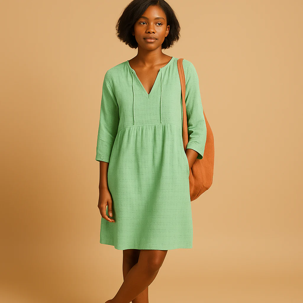De Karyl zomerjurk voor dames biedt de perfecte mix van stijl en comfort voor zonnige dagen. Deze knielengte midi-jurk met korte mouwen heeft een flatterende pasvorm en is ideaal voor zowel casual als formele gelegenheden. Gemaakt van een zachte katoenmix voor ademend comfort, is deze jurk verkrijgbaar in de kleuren wit, groen en lichtblauw, die passen bij elke stijl. Draag hem met sandalen voor een casual look of combineer met hakken voor een avondje uit.