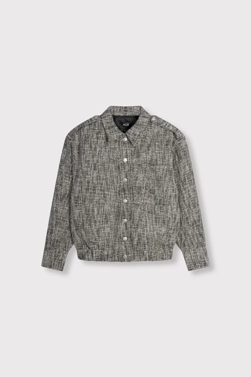 De zwarte dessin Alix the Label jack is een absoluut must-have voor elke moderne dame die houdt van stoere, maar toch vrouwelijke kleding. Dit geweven bouclé jasje is uitgevoerd in een zwart-wit kleurenschema en straalt pure klasse uit.