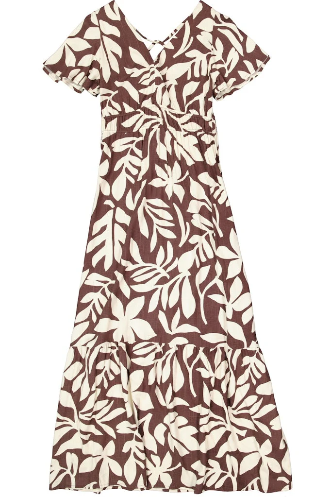 Deze prachtige bruin dessin maxi-jurk voor dames is een ware eyecatcher van het merk Garcia Woman. De jurk is gemaakt van 100% viscose, wat zorgt voor een zachte, comfortabele en luchtige stof. Perfect voor de warmere dagen! Het stijlvolle bruine dessin geeft de jurk een exotische uitstraling en is geschikt voor elke gelegenheid. De jurk heeft een elegante A-lijn pasvorm die zorgt voor een flatterende look. Combineer de jurk met mooie sandalen en accessoires voor een complete zomerse outfit. Shop deze musthave jurk nu bij NummerZestien en straal in stijl!