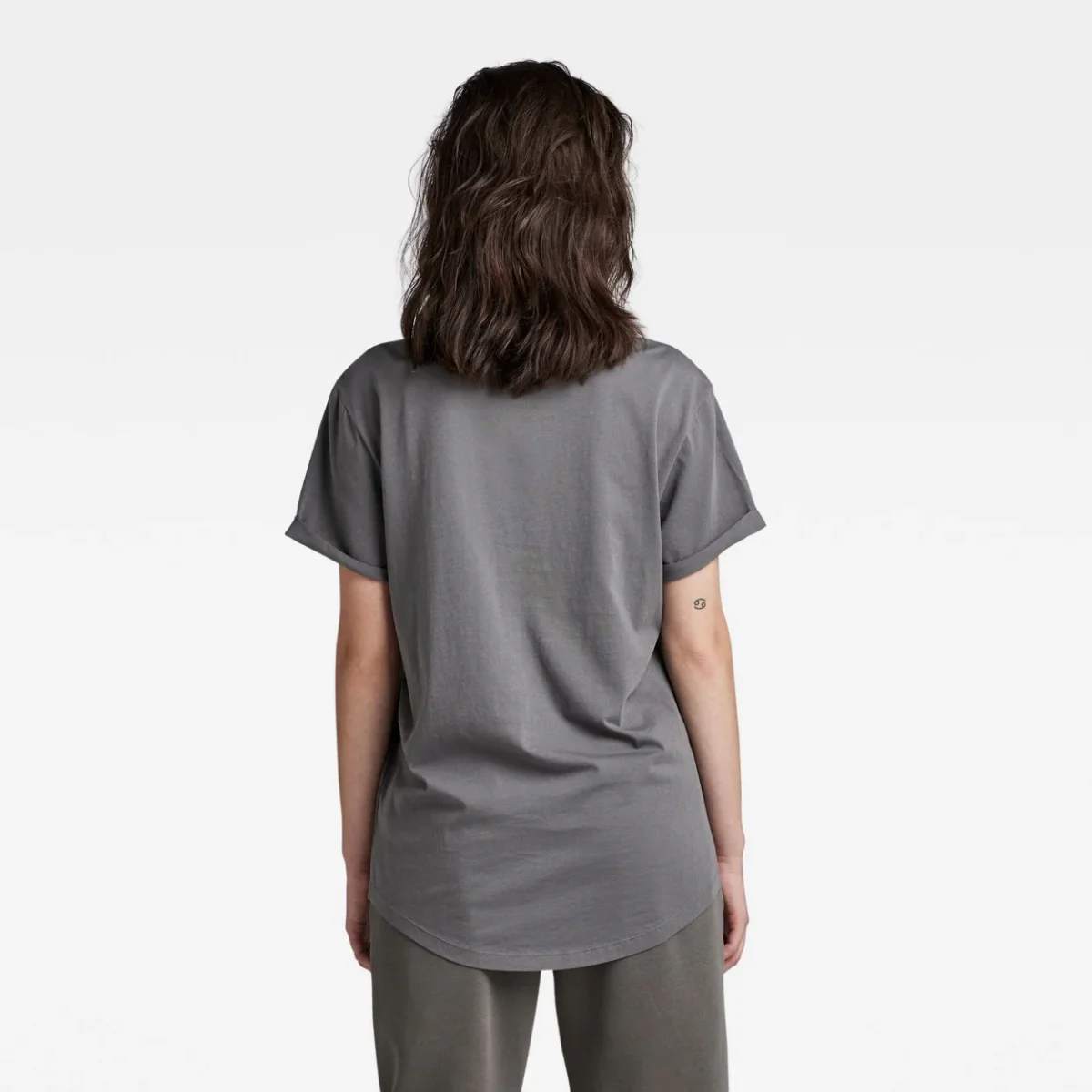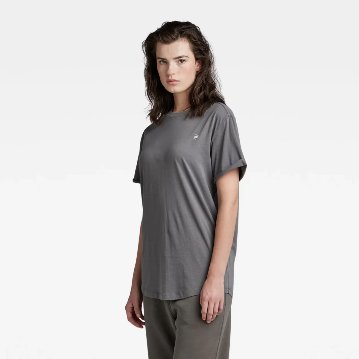 Het antraciet kleurige T-Shirt K/M Dames van het merk G-Star Dames is een must-have item voor elke vrouwelijke kledingkast. Dit trendy t-shirt is ontworpen in een loose fit, wat zorgt voor een comfortabele en casual look. De korte mouwen zijn subtiel omgeslagen en vastgezet met een kleine steek, wat zorgt voor een speels detail.