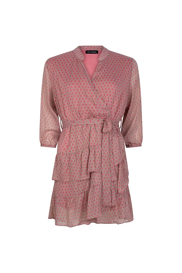 Deze prachtige roze dessin jurk van Lofty Manner is perfect voor de zomer! Het is een must-have item voor elke vrouw die houdt van stijl en comfort. De jurk heeft een speels dessin in vrolijke roze tinten en is voorzien van een elastische tailleband en een afneembare riem, waardoor deze perfect aansluit op jouw figuur.