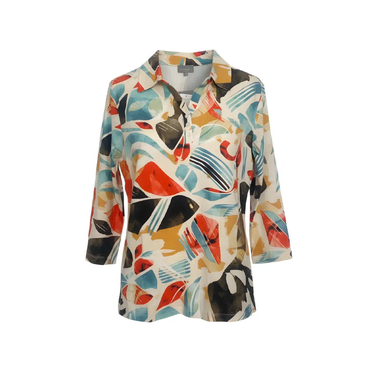 Dit Marinello poloshirt is een comfortabel en tijdloos basisitem met een verzorgde uitstraling. De grafische print in gezellige voorjaarskleuren geeft dit polo-shirt net dat beetje extra, terwijl de kraag met drie knoopjes en de driekwartmouwen zorgen voor een prettige, draagbare look voor elke dag.