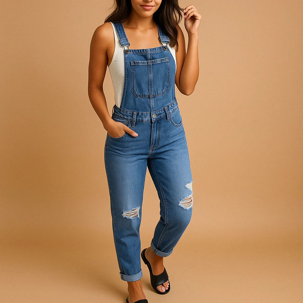 Creëer een trendy streetwear-look met Mila, een ripped denim overall die stijl en comfort perfect combineert. De verstelbare bandjes zorgen voor een ideale pasvorm, terwijl de gescheurde details een edgy touch geven. Dankzij de ontspannen pasvorm is deze overall perfect voor een casual of urban stijl. Draag ‘m met sneakers voor een relaxte vibe of combineer met hakken voor een gedurfde uitstraling.