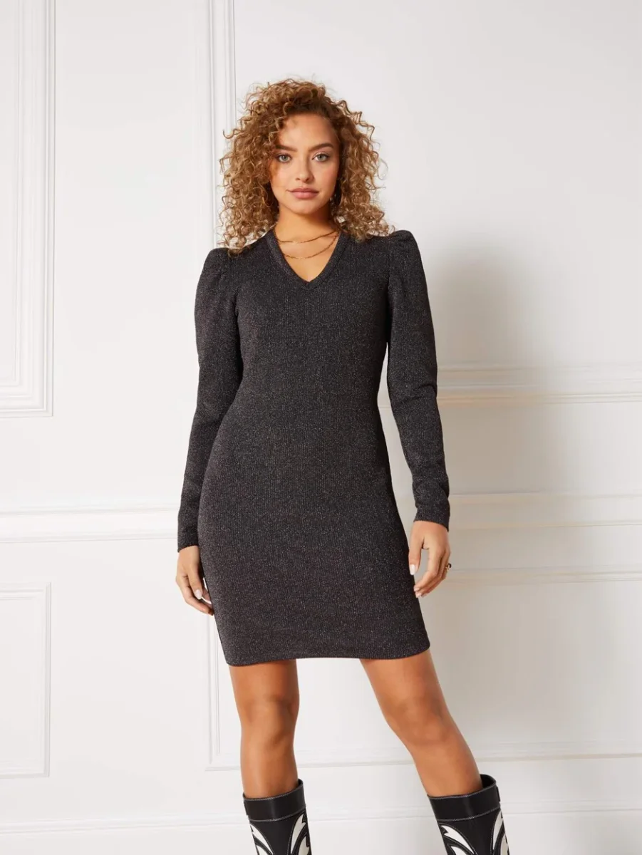 Deze prachtige zwarte dessin jurk van het merk Refined Department is een must-have voor elke moderne vrouw. De Refined Mira dress is gemaakt van een zachte, stretchy stof die perfect aansluit op het lichaam. Het ribpatroon van de jurk wordt geaccentueerd door een elegante zilveren lurex glitterdraad, wat zorgt voor een subtiele glans. De jurk heeft een v-hals en sierlijke pofmouwen, wat zorgt voor een speelse touch. Perfect voor zowel een casual als een chique gelegenheid. De jurk is gemaakt van hoogwaardig materiaal, bestaande uit 75% polyester, 21% lurex en 4% elastaan. Met deze jurk straal je elegantie en stijl uit en ben je klaar voor elke gelegenheid. Shop nu deze prachtige jurk kort dames bij NummerZestien en voeg een tijdloos item toe aan je garderobe.