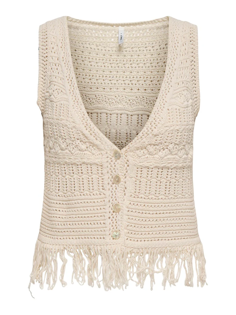 Deze prachtige ecru-kleurige gilet dames van het bekende merk Only is een must-have voor elke kledingkast! Gemaakt van een zachte en comfortabele mix van katoen en polyester, is deze gilet ideaal voor zowel casual als formele gelegenheden. De lichtgewicht stof zorgt voor een luchtige en relaxte look, terwijl het getailleerde model jouw figuur op zijn best laat uitkomen. Het open model maakt het mogelijk om deze gilet eenvoudig te combineren met verschillende outfits. Of je hem nu draagt over een blouse of als extra laagje over een jurk, deze gilet geeft jouw outfit direct een stijlvolle touch. Shop nu deze ecru-kleurige gilet van Only en voeg een veelzijdig item toe aan jouw garderobe!