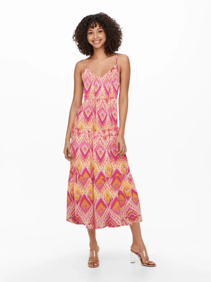 Of je nu een dagje gaat shoppen of een avondje uit gaat, met deze roze dessin maxi jurk van ONLY zul je er altijd geweldig uitzien en je comfortabel voelen. Bestel nu deze must-have voor jouw kledingkast en straal de hele zomer lang!