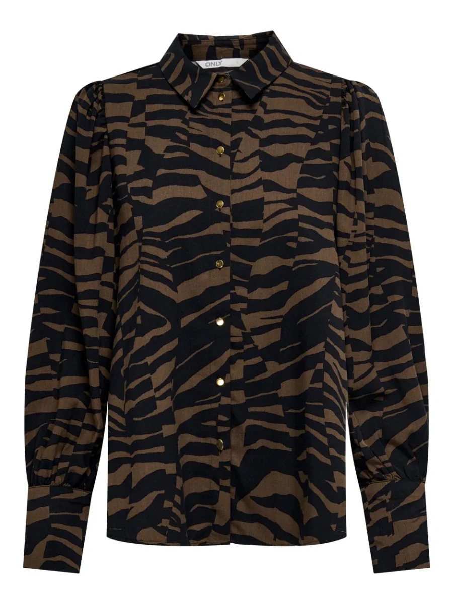 Deze stijlvolle blouse van het merk Only is dé must-have voor elke modieuze dame. Met het unieke bruine dessin, gecombineerd met zwart, steel jij gegarandeerd de show! Deze blouse is perfect voor zowel formele als casual gelegenheden en kan eindeloos worden gecombineerd met verschillende outfits.
