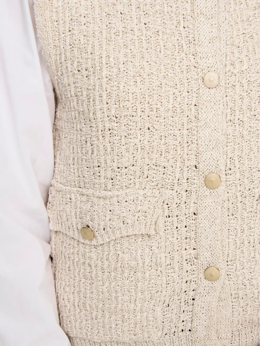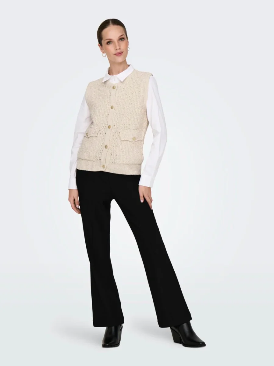 De beige gilet dames van het merk Only is een must-have voor elke moderne en stijlvolle vrouw. Gemaakt van een mix van 50% katoen, 42% polyester en 8% metaal, biedt deze gilet niet alleen comfort maar ook een vleugje glamour aan elke outfit. De neutrale beige kleur maakt het makkelijk om te combineren met elke andere kleur en voegt een klassieke touch toe aan elke look. Draag het over een basic top voor een casual uitstraling of over een blouse voor een meer geklede look. Met deze gilet ben je altijd ready-to-go, of het nu voor een dagje shoppen is of een avondje uit. Bestel nu deze veelzijdige en tijdloze gilet dames van Only en geef je garderobe een upgrade!
