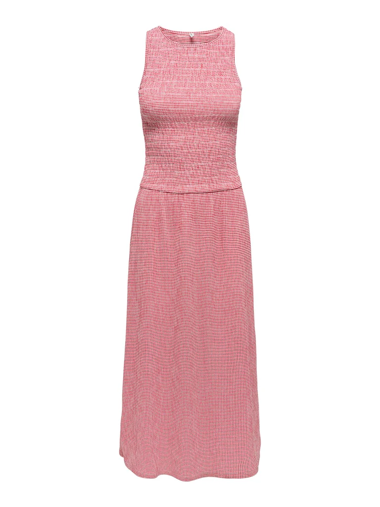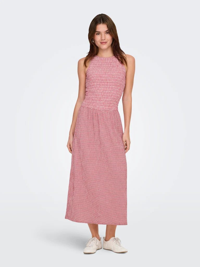 Deze prachtige, rode dessin jurk van het merk Only is een echte aanwinst voor je garderobe! De maxi lengte geeft je look een stijlvolle en elegante touch, terwijl het dessin voor een speelse twist zorgt. De jurk is gemaakt van 95% gerecycled polyester en 5% elastaan, wat niet alleen voor een duurzamer product zorgt, maar ook voor een comfortabele pasvorm. Draag deze jurk tijdens een avondje uit of een zomerse dag en straal in stijl! Bestel nu deze must-have bij Nummerzestien en geniet van een onweerstaanbare look.