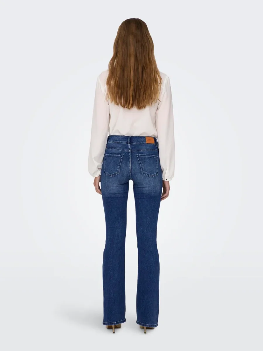 Deze prachtige blue denim kleurige jeans bootcut flare fit dames van het merk only is een must-have voor elke kledingkast. Deze jeans heeft een flared fit en bootcut pijpen, waardoor je benen langer lijken en je een vrouwelijk silhouet creëert. Door de medium blue kleur is deze jeans perfect voor elke gelegenheid.